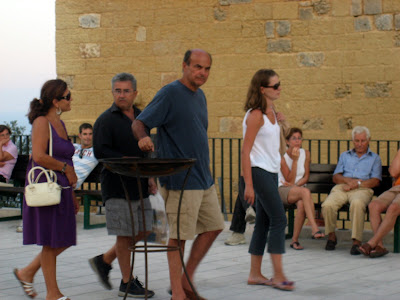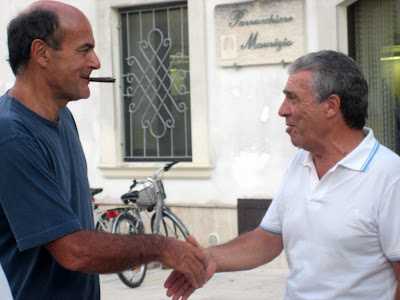L’On. Bersani, candidato alla segreteria nazionale del Partito Democratico, con alcuni amici, visita Castro. Anche lui non resiste alla curiosità di sapere cosa c’è dietro quella ringhiera. Fotografato mentre i ragazzi di Malarazza montano le strumentazioni per il concerto della sera.