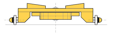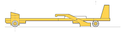 Sterzo e avantreno a cavallo della scocca (che resta sotto appesa da un perno). Due sagomature per puntare e tenere fermi i piedi.