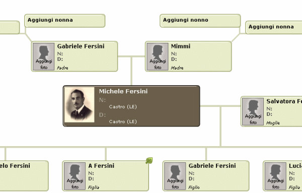 Ho provato il servizio e effettivamente è notevole. In un paio d’ore ho immesso 130 nomi di parenti e antenati, alcune schede complete, alcune appena accennate. Al software basta pure un nome di battesimo per incasellare un parente di cui non si ha nient’altro.